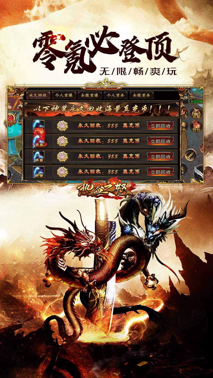 《热血之怒(三折免费送代金)》,以硬核爆装打破桎梏,以重磅福利回馈玩家,以创新玩法颠覆印象,让货币全图爆成为常态,让零氪登顶成为现实,让一大陆爆终极不再是梦想。在这里,每一次刷怪都是一次追梦,每一次爆装都是一次惊喜,三折充值、免费代金、每日真充,福利享不停;追梦之路、远古遗迹、满屏神装,快感无止境。告别快餐式传奇,告别氪金碾压,来《热血之怒》,开启你的热血追梦之旅,以手中之刃,战遍天下强敌,以一身神装,问鼎天下第一,书写属于你的热血传奇!